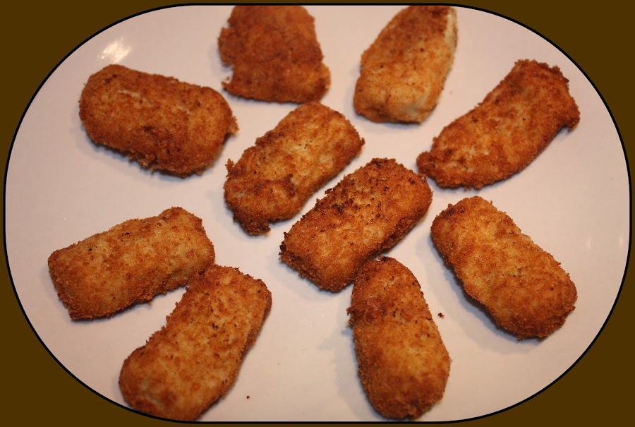 Ya sabéis de mi intolerancia a la leche de vaca, por eso las hago con leche de soja; y al gluten y al maíz , por eso las hago con harina de arroz ( puede que cambie la cantidad de harina si es comprada ó casera). Os preguntareis entonces porqué las rebocé con pan, pues como es la primera vez que las hago en thermomix ... pero para la próxima van rebozadas como siempre con harina de arroz.