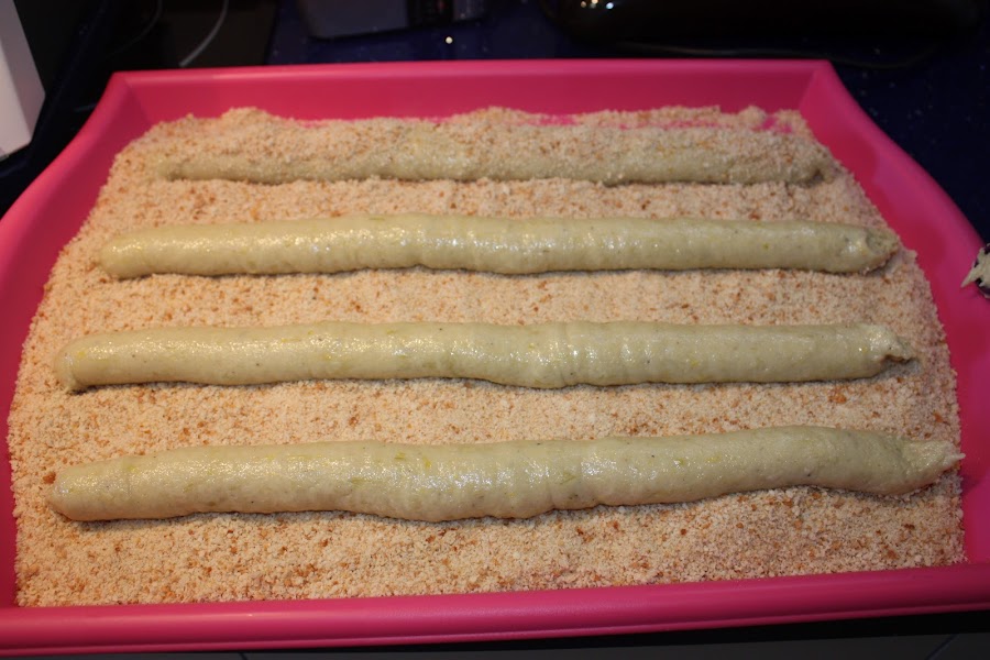 Le vamos rebozando de pan por todo y haciendo cortes del tamaño que queramos con una tijera...