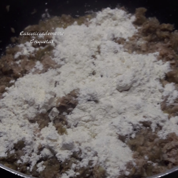Le ponemos la harina por encima y seguimos rehogando para que se cueza un poco, si vemos que queda un poco seco le ponemos un poquito más de mantequilla, sin pasarse...