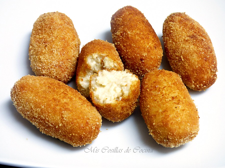 Con la ayuda de dos cucharas vamos formando las croquetas, las pasamos por huevo y pan rallado y las freímos.