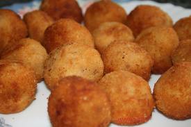 Después solo tenemos que hacer bolitas , pasarlas por harina blanca luego huevo y pan rallado .