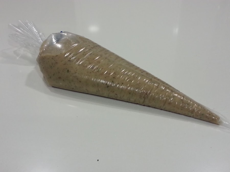 5. - Y ahora viene el truco, si tenéis manga pastelera desechables, o las normales, poniéndole una pinza en la boquilla, la rellenamos con la masa y dejamos enfriar.