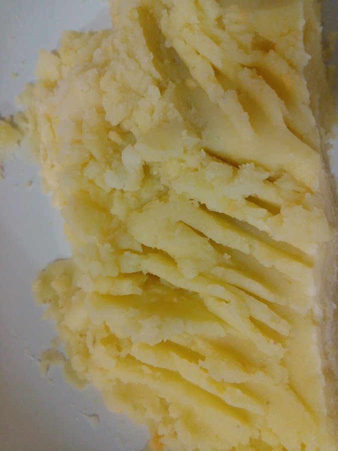 Pelar las patatas, cocerlas en abundante agua y cuando estén blandas, sacarlas, escurrirlas bien y machacarlas con un tenedor añadiéndoles el aceite de oliva y la nuez moscada.
