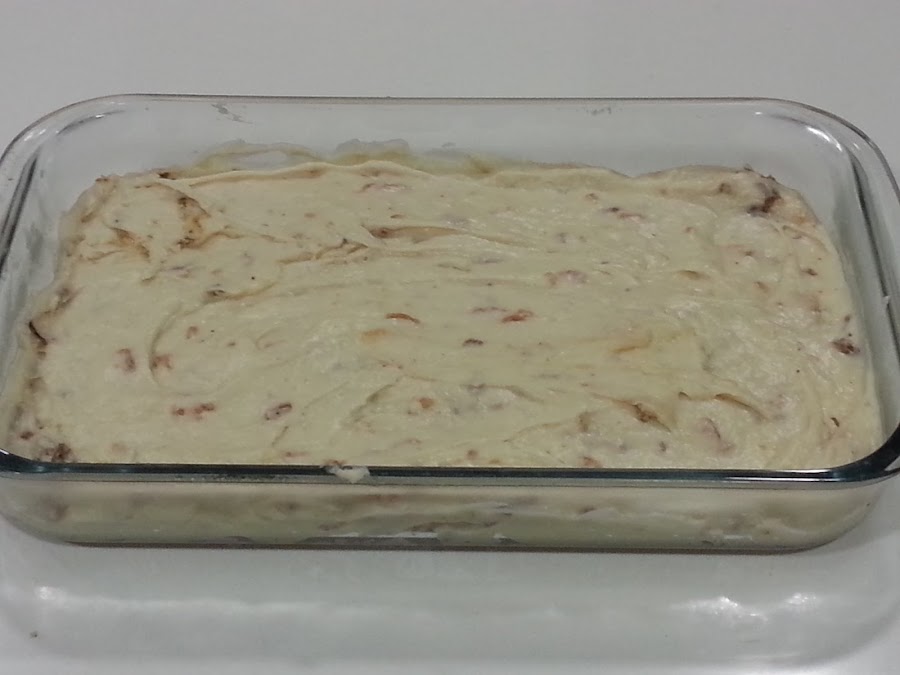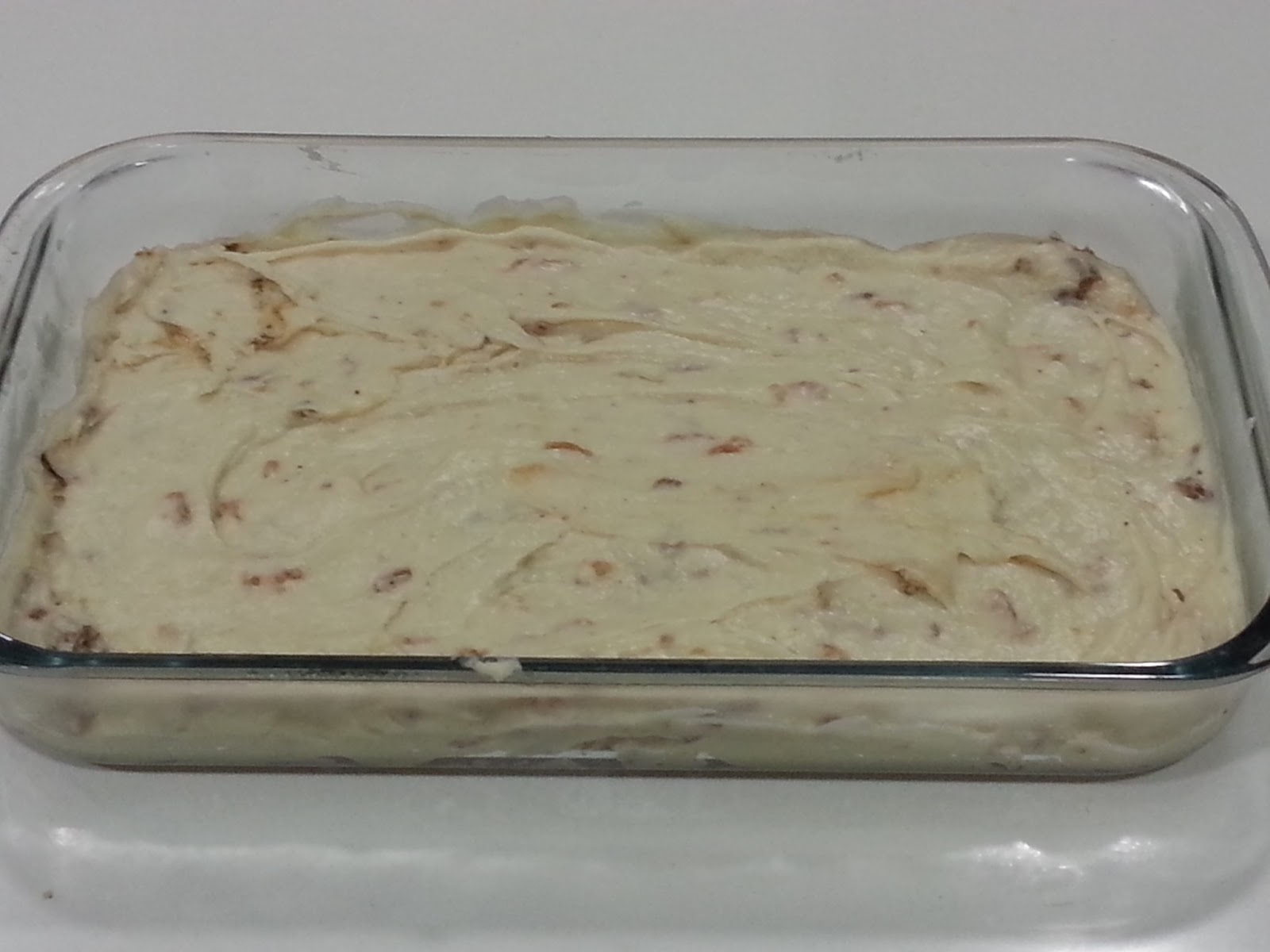 6. - En esta ocasión quería hacerlas cuadradas, así que os cuento, pinceláis una fuente cuadrada con aceite, de girasol o de oliva, no es importante. Volcamos la masa en la fuente y dejamos enfriar.