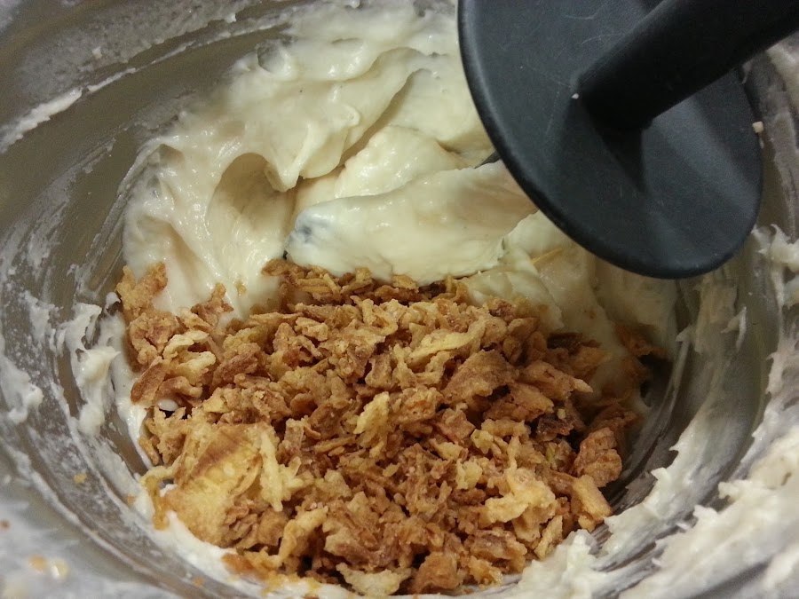 5. - Y por último agregamos la cebolla frita y mezclamos bien .