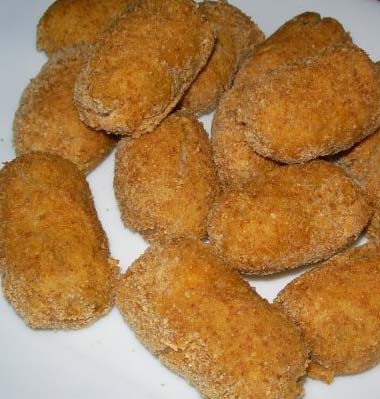 Elaboración: Se fríe el bacon con una gota de aceite y se reserva en un plato grande. Hacemos la bechamel al gusto, las cantidades son orientativas, yo empiezo dorando la harina en el aceite (aprovechando el de freir el bacon que le da mucho sabor) y voy añadiendo leche sin parar de remover hasta que esté espesita para poder formar las croquetas. Justo en ese momento vierto sobre la bechamel el queso para que se funda con el calor de la sartén y al final lo mezclo con el bacon. Retiro del fuego y lo dejo reposar un ratito en el plato. Sólo queda formar las croquetas y freirlas en abundante aceite. Para la fritura, se rebozan en huevo y pan rallado y el aceite debe estar muy caliente. Llevan un poquito de tiempo hacerlas, pero estan tan ricas..........