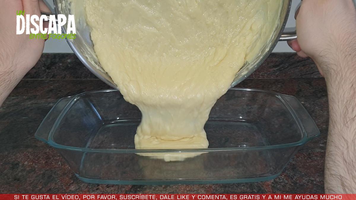 2Y cuando ya tenemos el espesor deseado vertemos la bechamel en un recipiente, la extendemos bien y le ponemos un papel film por encima.