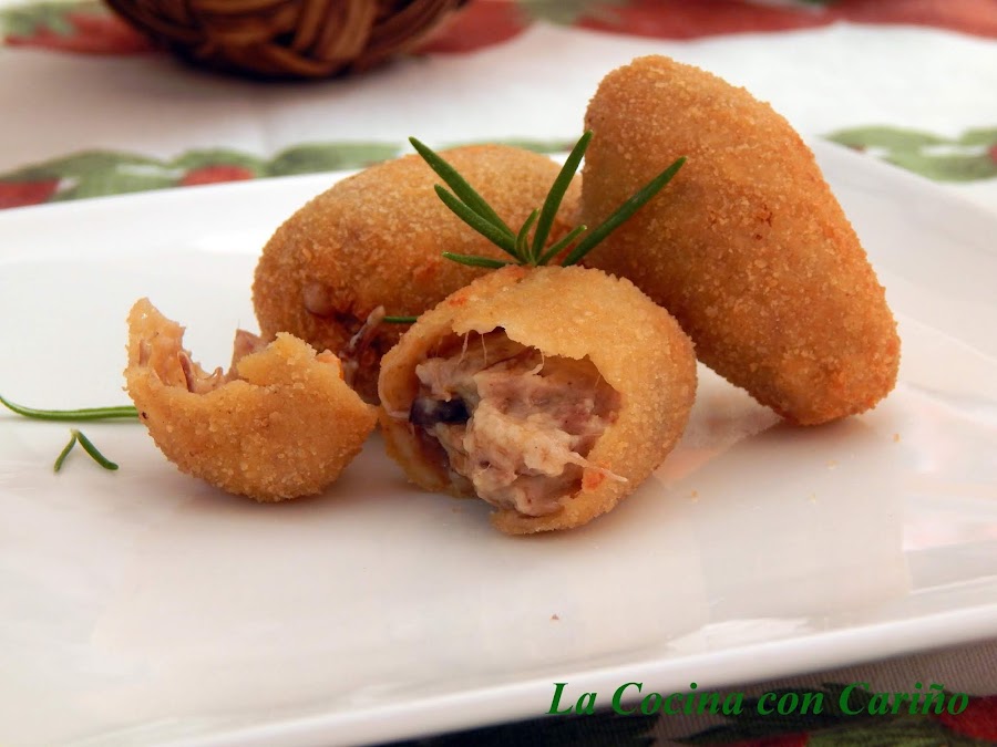 Pues nada. Estas croquetas las hice, porque me las pidió un cliente para una cena entre amigos y celebrar un 50 y tantos cumpleaños. Y la verdad me cautivaron hasta a mí.