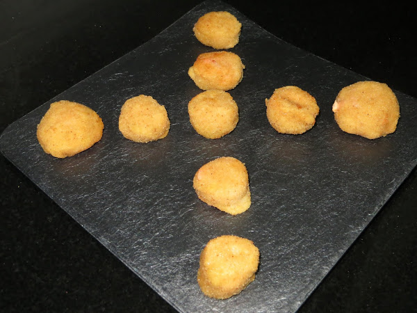 Al día siguiente descongeláis el salmorejo y comenzáis con el rebozado, lo pasáis por pan rallado, huevo y pan rallado. Esta operación la tenéis que hacer por lo menos dos o tres veces para que quede una capa gorda de pan rallado y además la debéis hacer muy rápido para que no se descongele el salmorejo. Luego lo volvéis a meter al congelador.