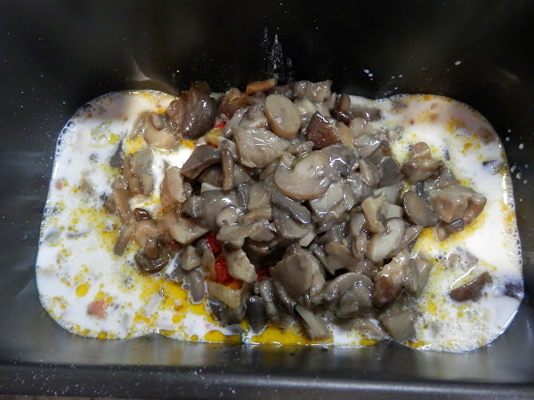 Una vez tengas las setas pochadas y que no tengan agua, añade a la cubeta.