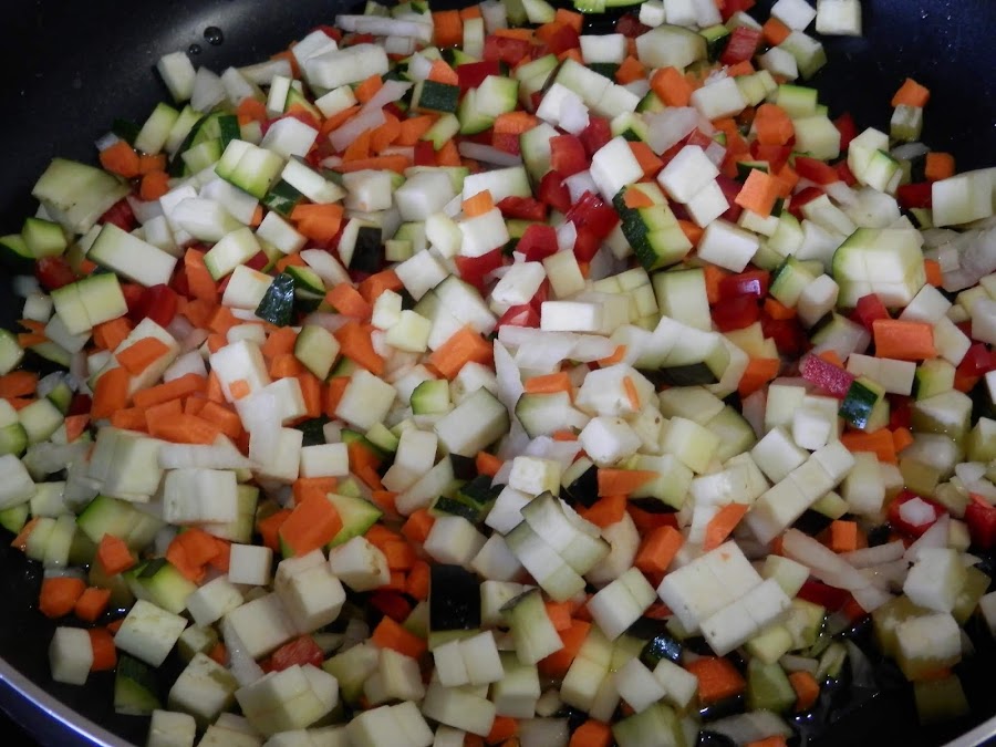 En una sartén, pon aceite a calentar y pocha la verdura.