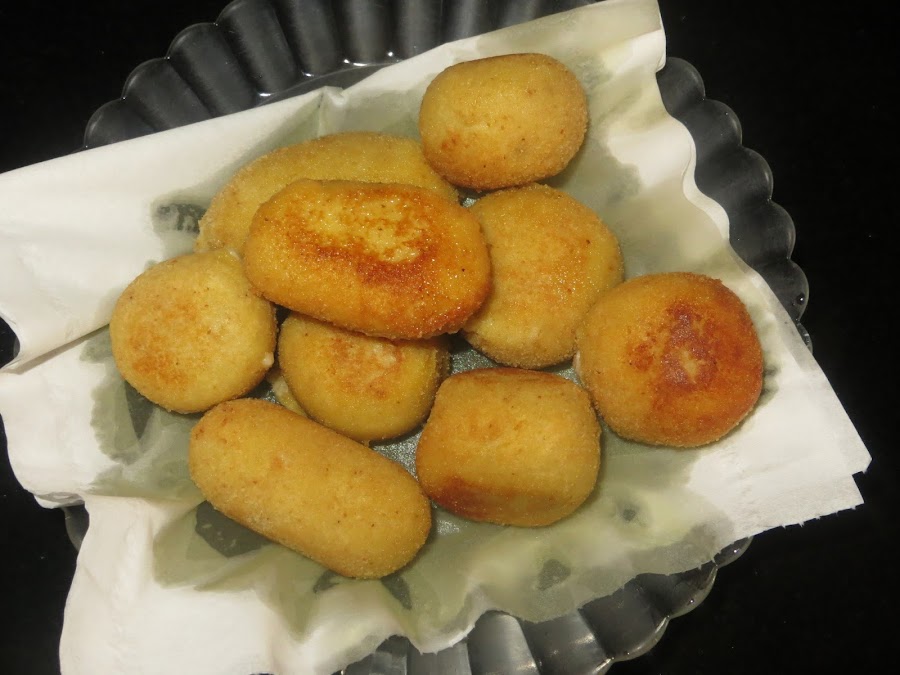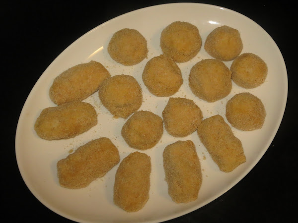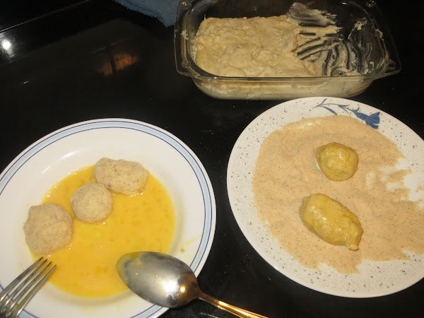 Dejamos que se enfríe y luego metemos la masa al frigorífico durante varias horas. Sacamos y vamos haciendo nuestras croquetas, pasamos por pan rallado, huevo y otra por pan rallado. Las ponemos a freír en abundante aceite y ya están listas para servir.