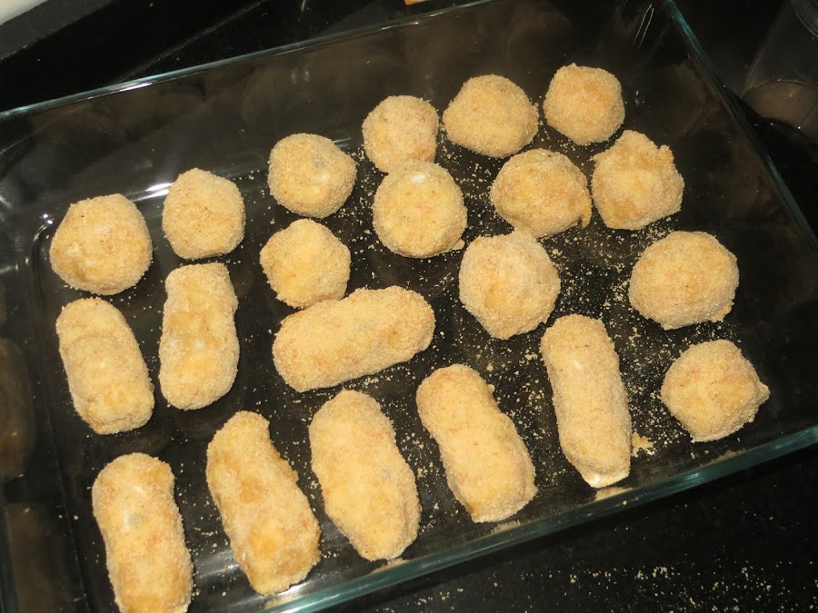 Una vez que tenéis lista la bechamel la metéis al frigorífico durante un par de horas. La sacáis y comenzáis el rebozado, pasarlo por harina, luego por huevo y finalmente por pan rallado. Hay gente que le hace un doble rebozado, aunque a mí me gusta más simple, también podéis omitiros la harina y hacerla pan rallado, huevo y pan rallado. Eso va al gusto.