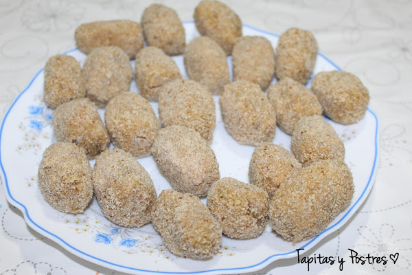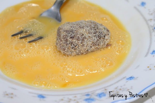 Cogemos porciones del tamaño de una cucharada y la pasamos por pan rallado, huevo batido y otra vez por pan rallado. Ahora las podemos congelar si queremos, si no las freiremos en abundante aceite caliente.