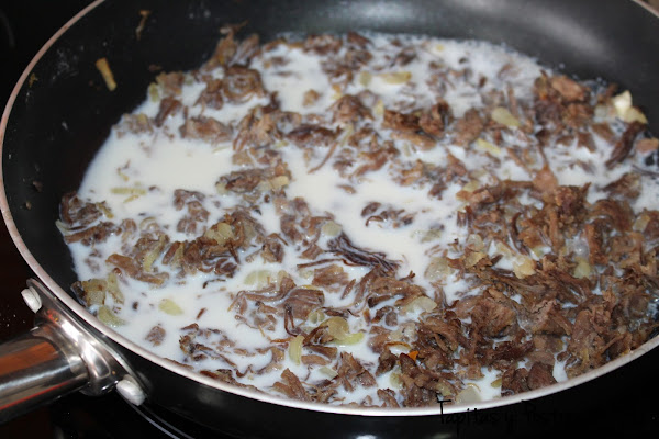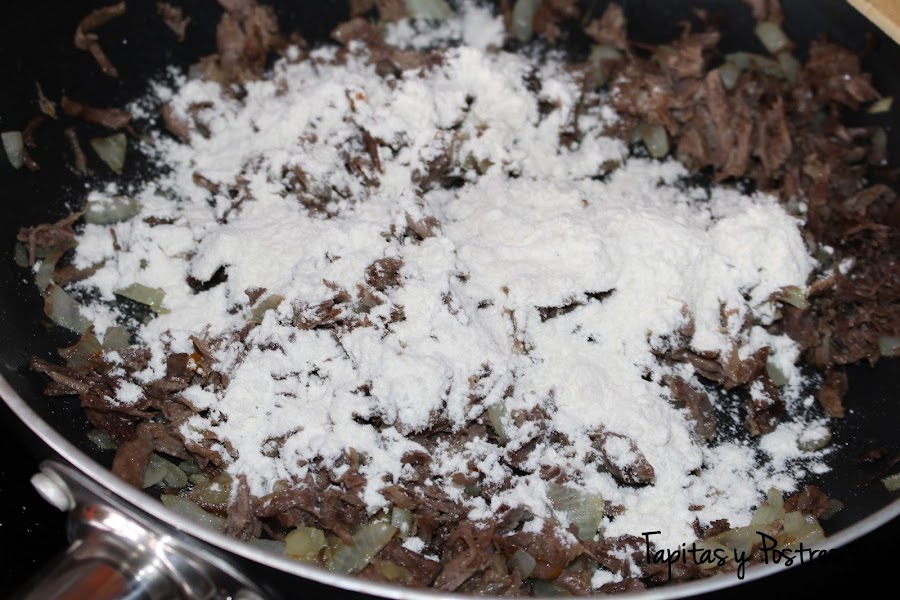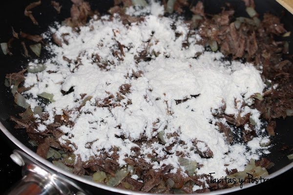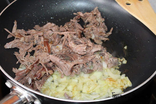 Le agregamos la carne desmenuzada y damos unas vueltas.