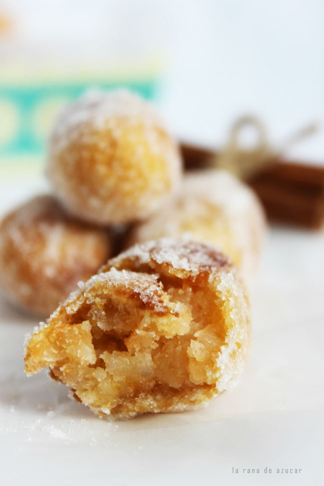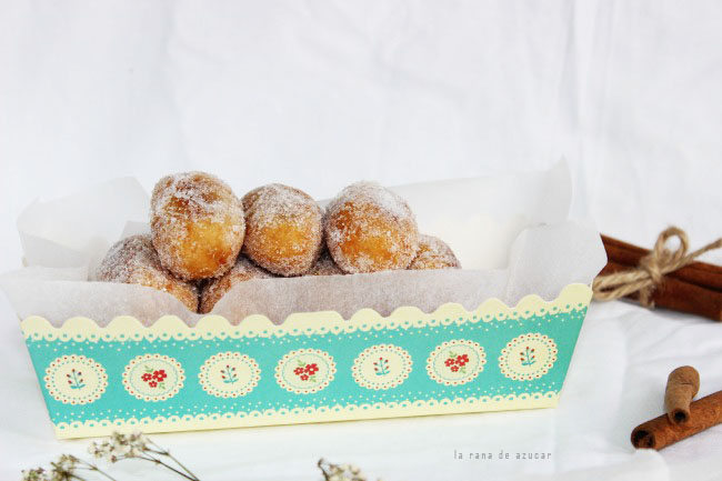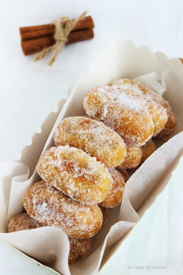 Escurrir bien sobre papel de cocina y rebozar en azúcar.Y a disfrutarlas =)