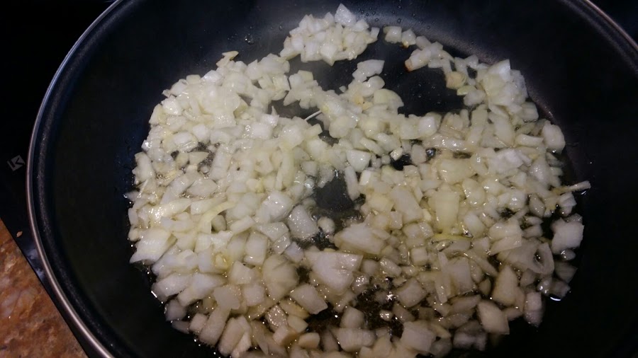 Cortamos la cebolla en trocitos y la sofreímos un poco.