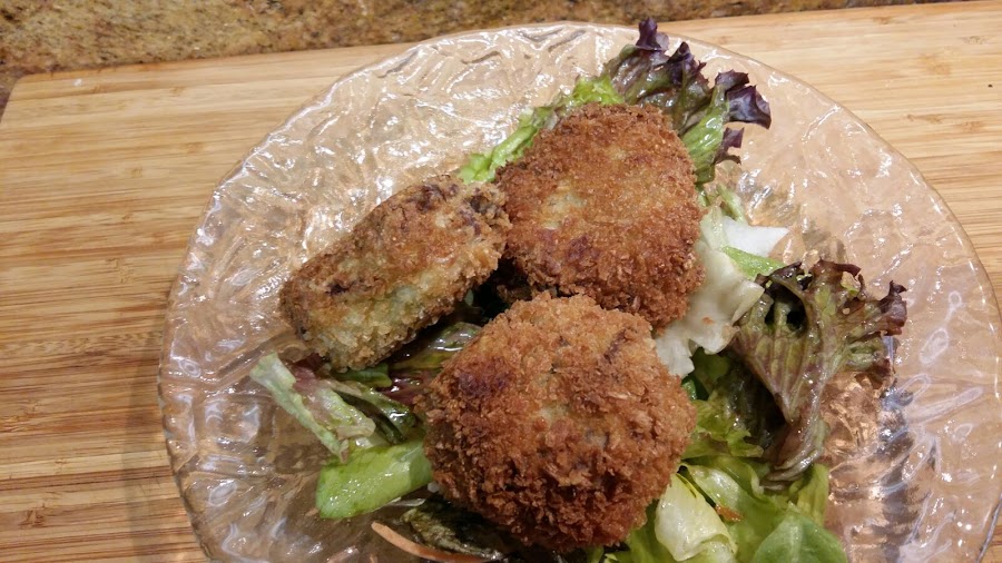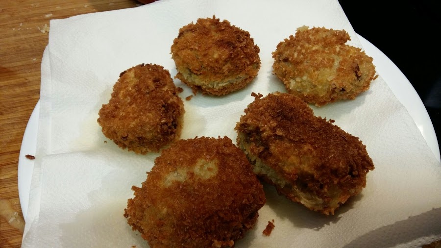 Cuando la masa esté a una temperatura tal que no nos quememos, haremos las croquetas.