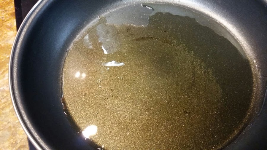 Mientras se cuecen las patatas, pondremos una sarten al fuego con un poquito de aceite.