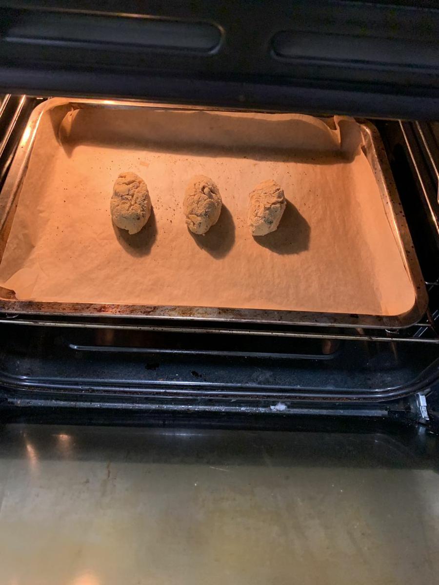 Preparamos un plato con el pan rallado. Y sacamos la masa de la nevera. Hacemos las croquetas y las pasamos por pan rallado y las dejamos en una bandeja de horno con papel de horno. Precalentamos el horno a 200 grados. Ponemos las croquetas al horno durante unos 12 minutos. Y listos!