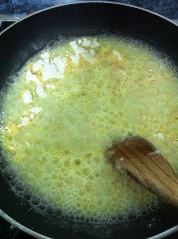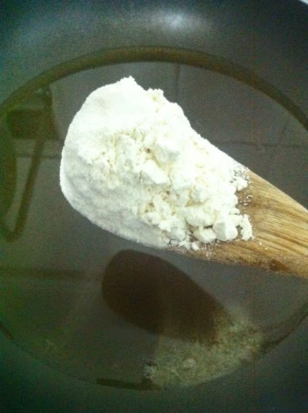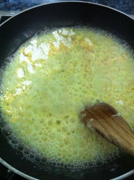 Cuando este caliente, añadiremos tres cucharadas de harina.