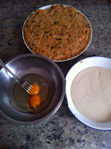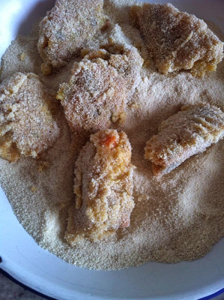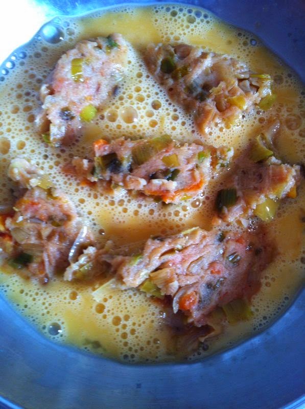 Con ayuda de una cuchara, iremos cogiendo pequeñas porciones de masa, y añadiéndolas al huevo, para después, pasarlas por el pan rallado.