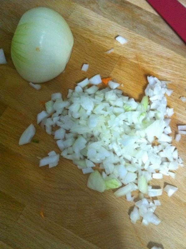 Ahora, picaremos las dos cebollas, y las añadiremos al sofrito.