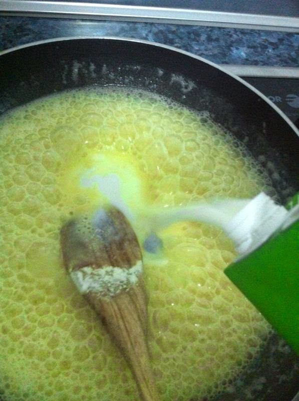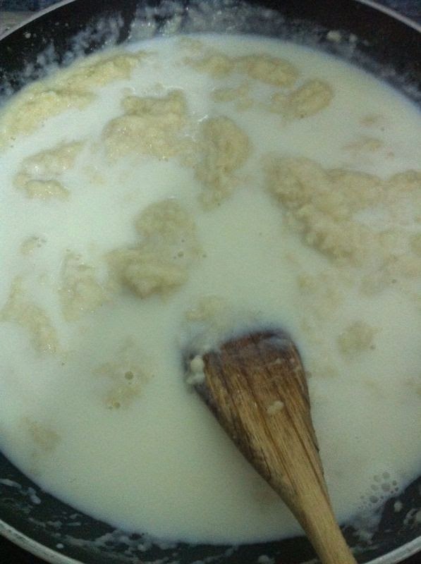 Cuando este bien espeso, iremos añadiendo mas leche, hasta que consigamos el espesor deseado.