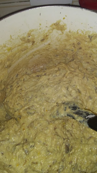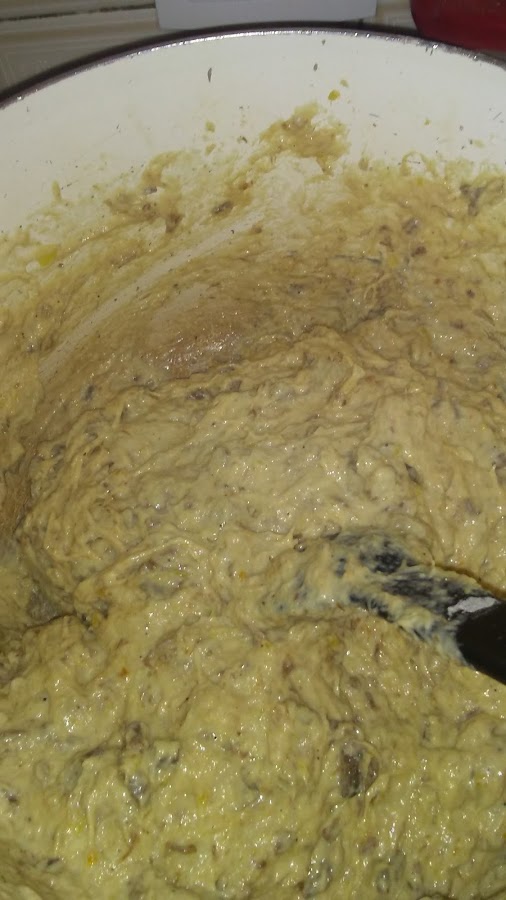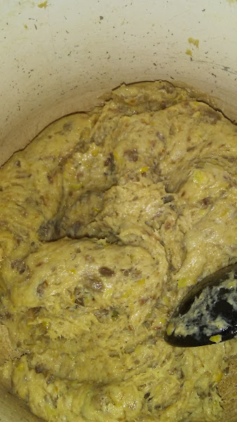 Ø Vuelco toda la bechamel sobre la carne que hay en la cazuela y muevo sin parar hasta que la masa se unifique y la textura sea uniforme.