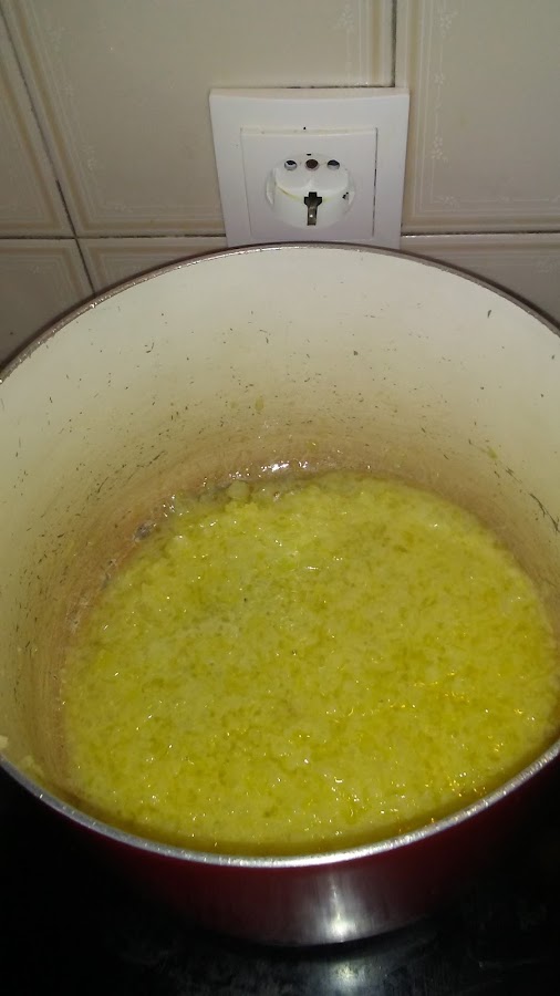 Ø Pochar la cebolla muy picada en la mantequilla.