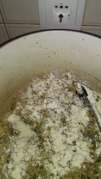 Ø Añadir la bechamel : a 1 l de leche le quito 200 ml. y se lo añado de nata (crema de leche), la caliento y añado la sal, la pimienta y la nuez moscada.