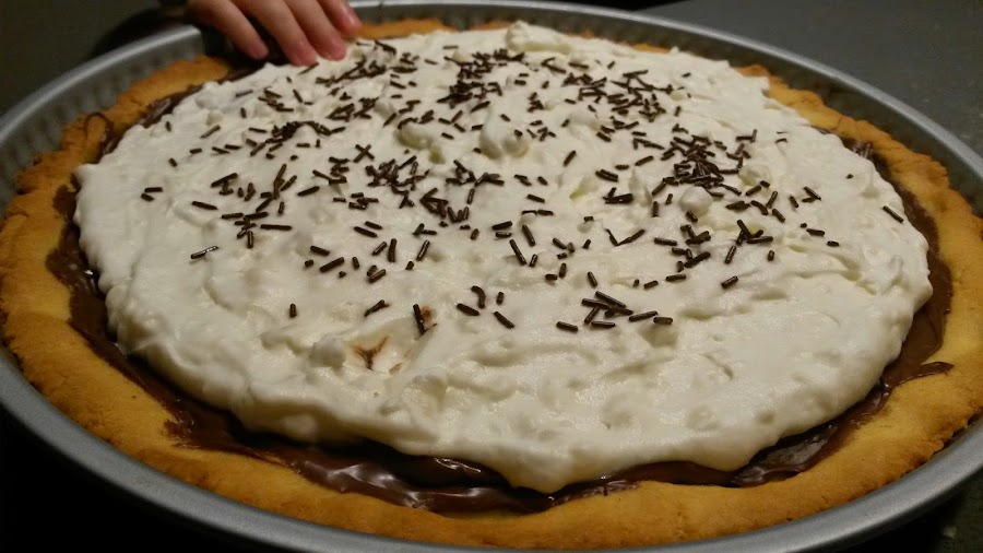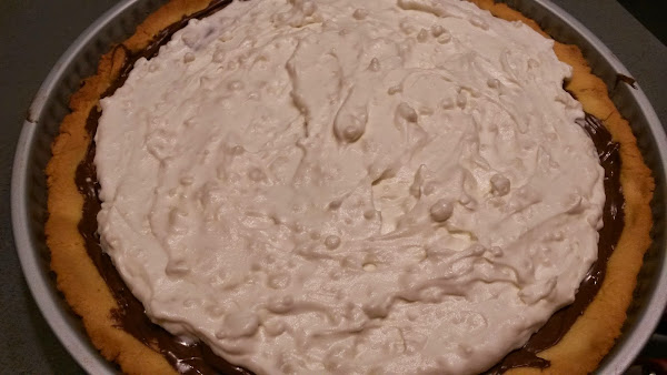 8. Sacar la crostata del horno, echarle una capa generosa de nutella y dejar que se enfríe.