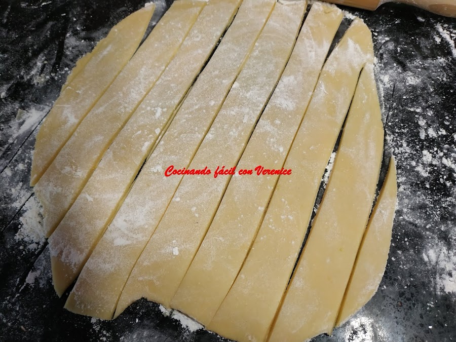 A estas tiritas se le pasa una brocha con la yema de huevo batida más la cucharada de leche.