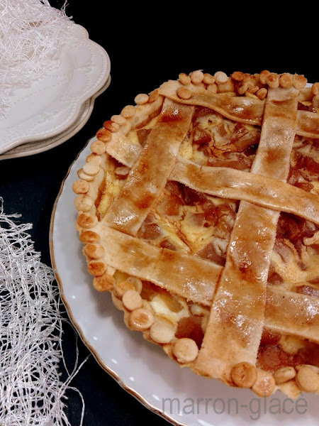 Mientras estiramos la masa restante y formamos el enrejado sobre un papel de hornear.Dejar en la nevera para que endurezca.Nos será más fácil colocarlo.