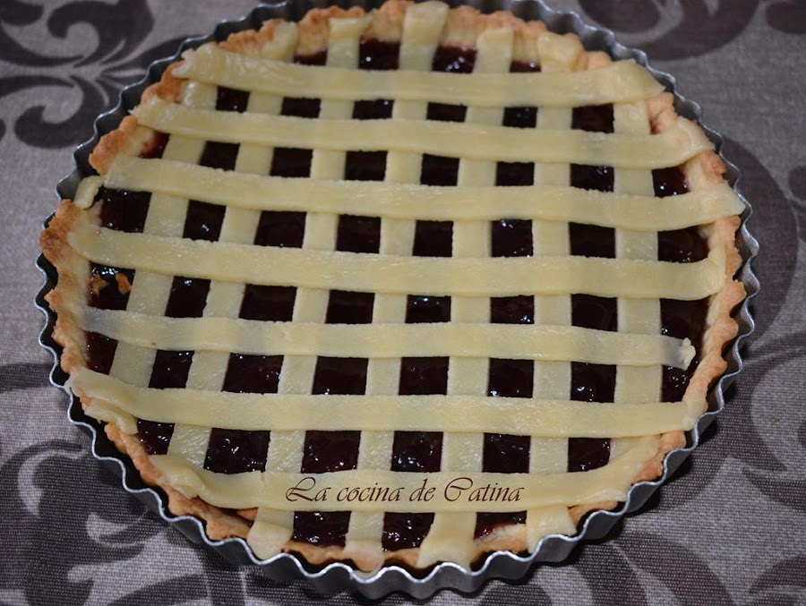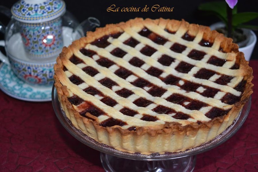 La crostata es una tarta italiana que se toma como postre con un relleno de mermelada, que puede sustituirse por frutas, crema pastelera, etc.