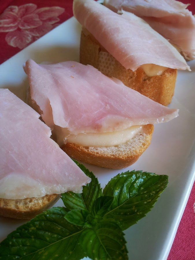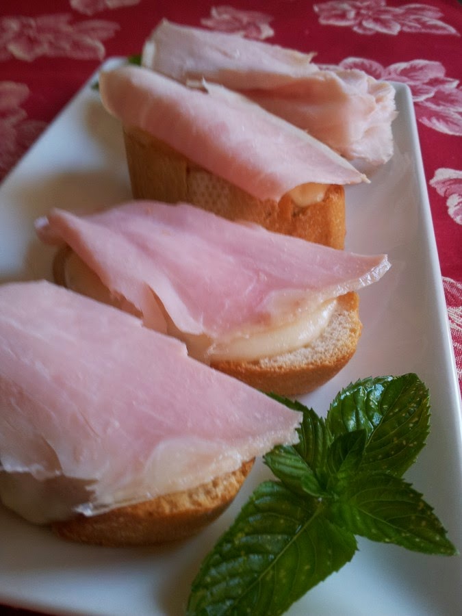 Bueno púes hoy os propongo preparar este rápido y sabroso crostini, a base de mozzarella y jamón de york. Yo la preparo para cenar, ya que hay que encender el horno unos minutos y durante el día, como que no apetece pasar calor en la cocina, pero os puedo asegurar que merece la pena.