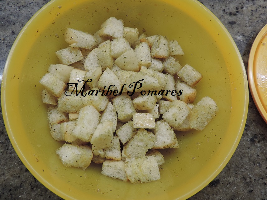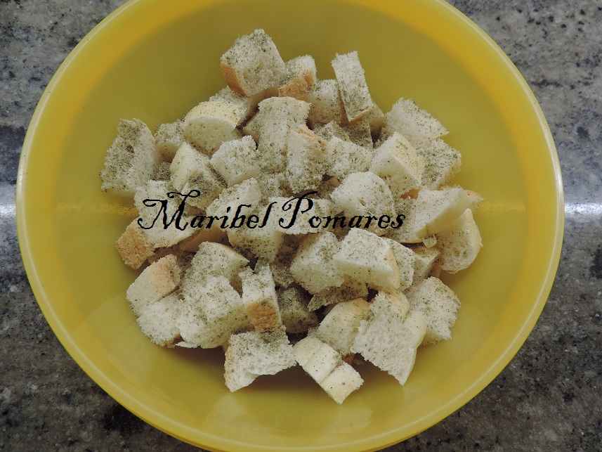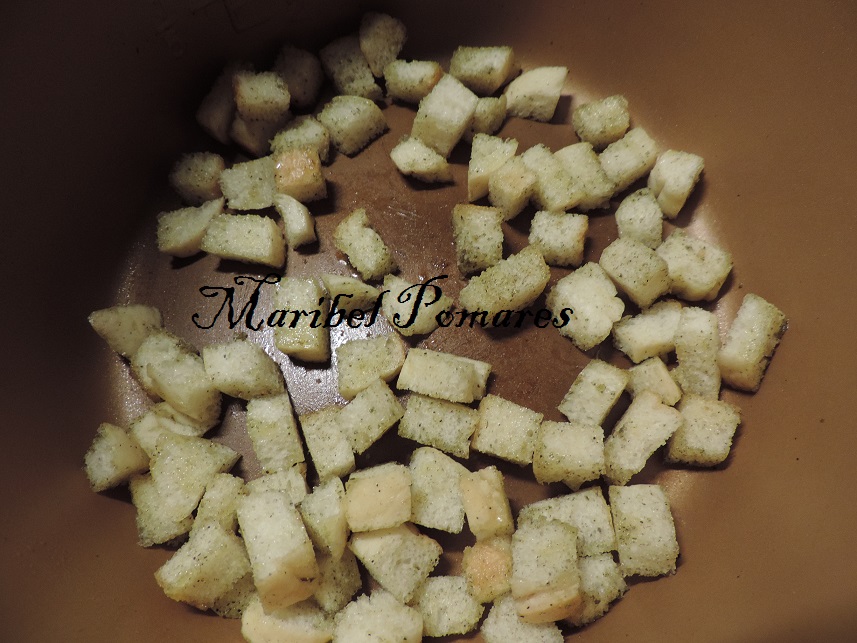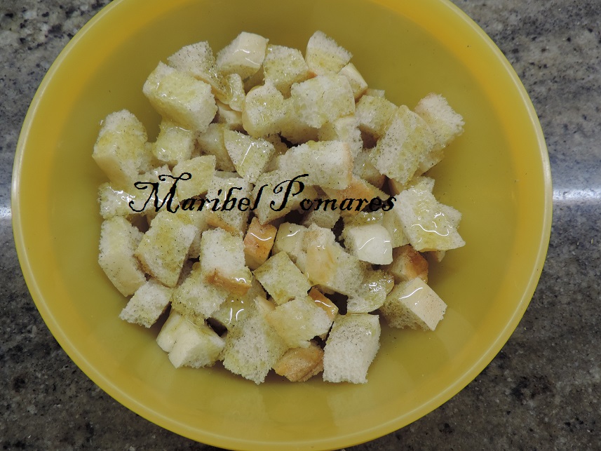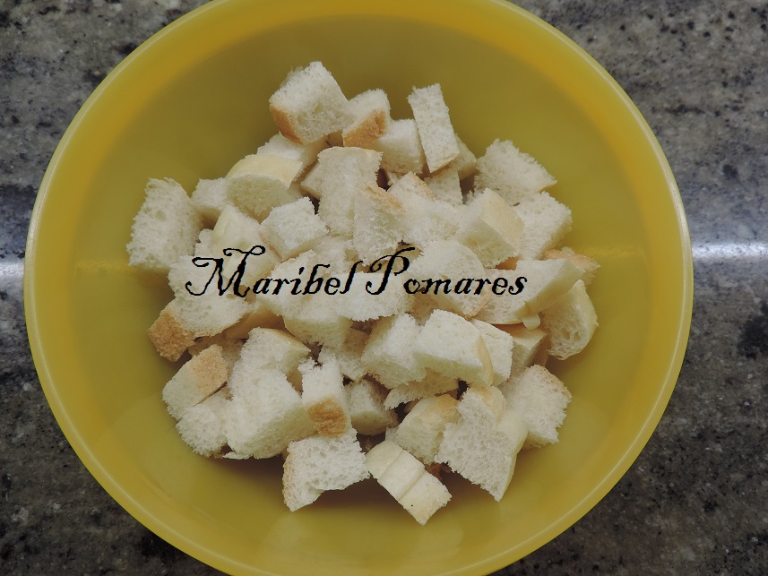 Mezclamos bien para que se mojen todos los trozos de pan,