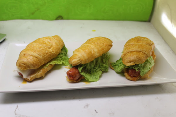 Últimamente me complico poco la vida realizando la cena, en esta ocasión opte por consumir unos cruasanes rellenándolos con una simple chistorra troceada.