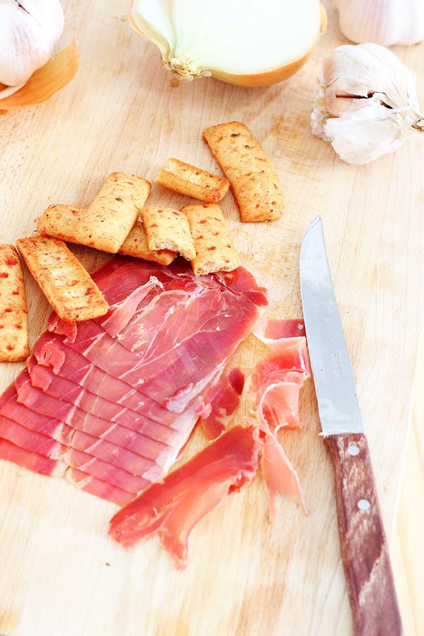 Como podéis ver, volvemos con fuerza y con un super ingrediente elegido por EVELYN, nada más y nada menos que el JAMÓN SERRANO ¿alguien en la sala que no le guste? ¬ ¬ jajajja me da que no, esa grasita cuando chorrea, mmmm!! una locura, vamos a lo que vamos que me pierdo.