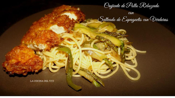 Hoy es turno para una de esos platos que encantan a los mas peques y por supuesto a los mayores apasiona. Vamos hacer un empanado de kikos con pechugas de pollo en donde el crujir y el contraste sera espectacular y ademas acompañaremos de un salteado de espaguetis con esparragos y calabacin en salsa de soja. Creo que tenemos el plato perfecto para una comida perfecta.