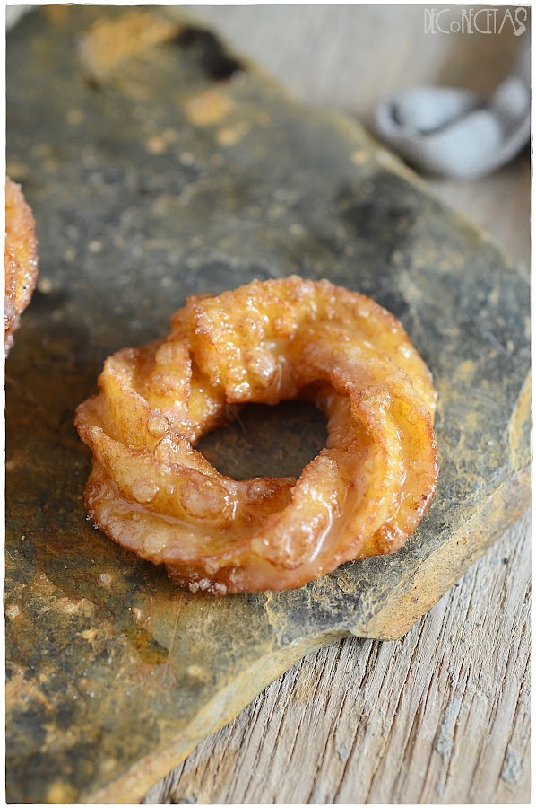 Por último realizamos un almíbar con azúcar glass miel y unas cucharadas de leche en el que introduciremos nuestros crullers una vez fríos