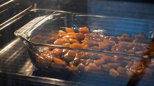 Precalentamos el horno a 110 grados y cuando esté listo horneamos las ciruelas durante 15 minutos más o menos.
