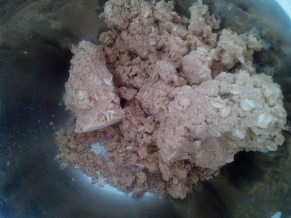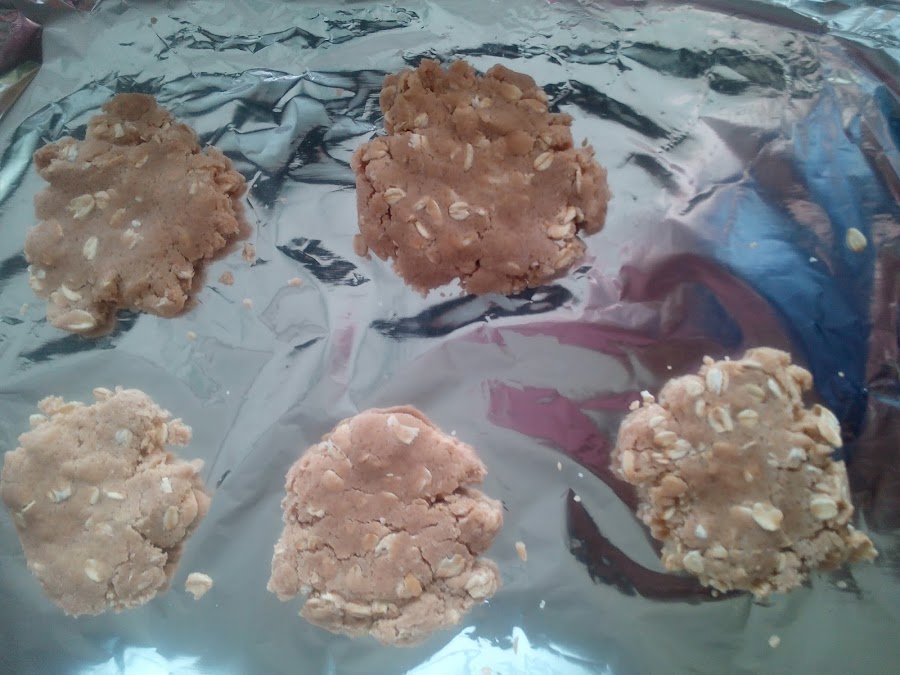 A mi me sobró un poco del topping y se me ocurrió hacer bolitas y aplastarlas sobre una placa para hornear y así hacer unas galletitas para acompañar.
