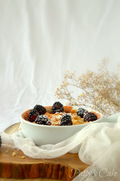 Ahí estaba yo, buscando una receta entre sus recetas, que no fuera muy difícil y que me atrajera. Y entonces la vi. "Apple, lychee and blackberry crumble" o lo que es lo mismo "crumble de manzanas, lichis y moras". Sonaba estupendo y además, me recordó a tiempos de mi infancia donde sólo había dos o tres restaurantes chinos en mi ciudad e íbamos casi todos los domingos a comer allí. De postre por supuesto, el típico helado, algunas veces frito, nata (crema de leche) con almendras caramelizadas, flan y lichis. ¡Qué ricos!