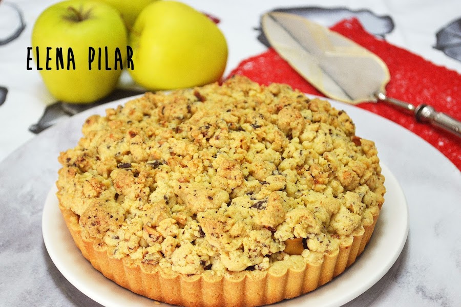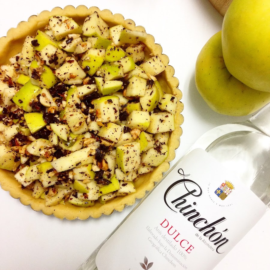 Crumble pie de manzana, avellanas y chocolate, con un toque de Anís Chinchón: