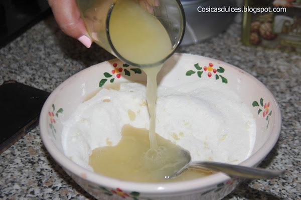 Mientras tanto preparamos la crema. Para ello mezclamos la harina con el azúcar y la ralladura de limón y agregamos el zumo de limón.