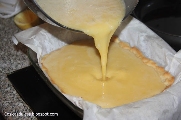 Añadimos la crema sobre la base que teníamos horneada.