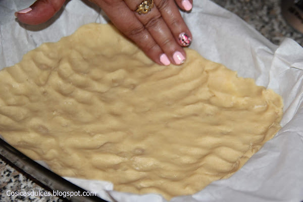 Extendemos la masa en un molde unos 20 centímetros y horneamos a 180º hasta que veamos que está bien doradita.