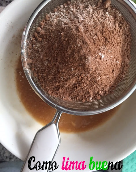 Incorporamos el harina, cacao y polvo para hornear