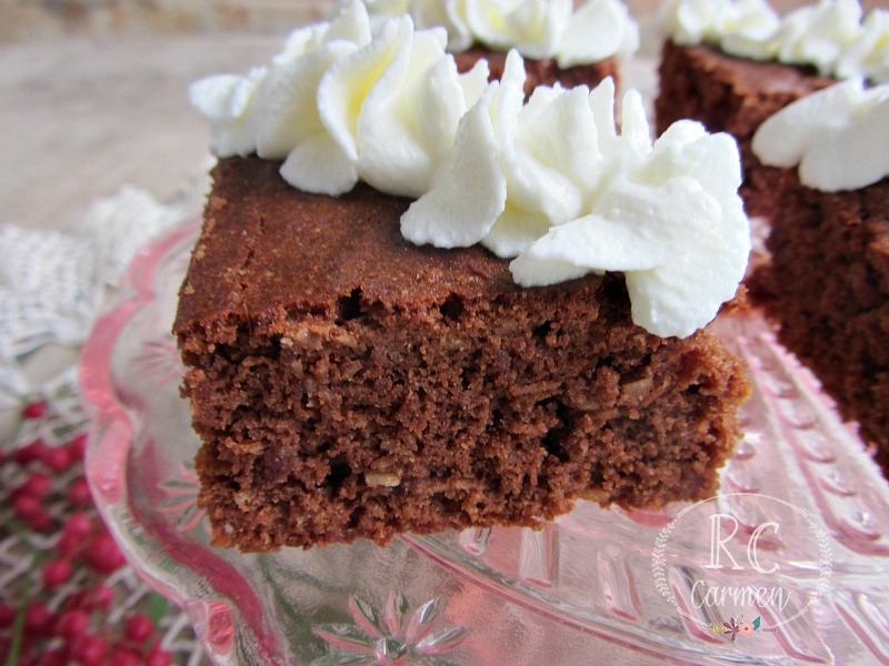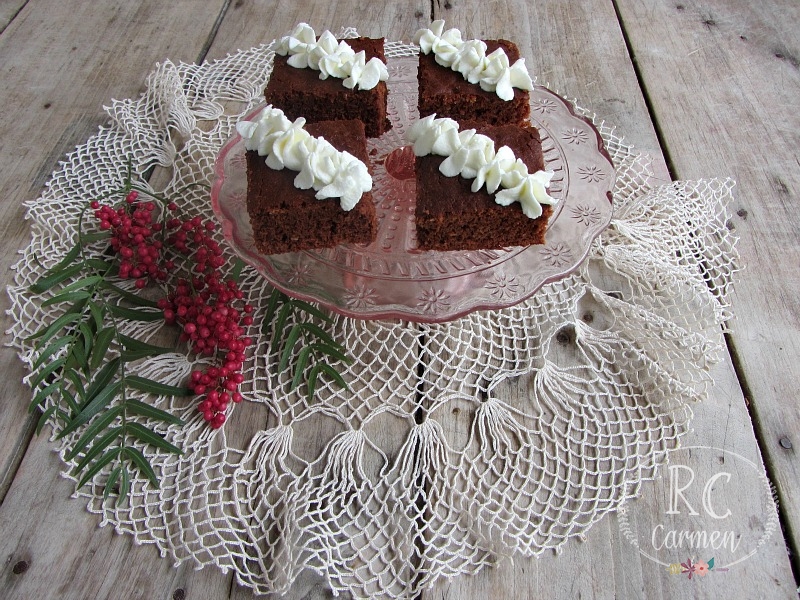 Nunca la había empleado en recetas dulces, pensé que un bizcochito tenía que estar muy bueno con ella y este es el resultado. Es un bizcocho denso,una especie de brownie,por eso lo he cortado en cuadrados.